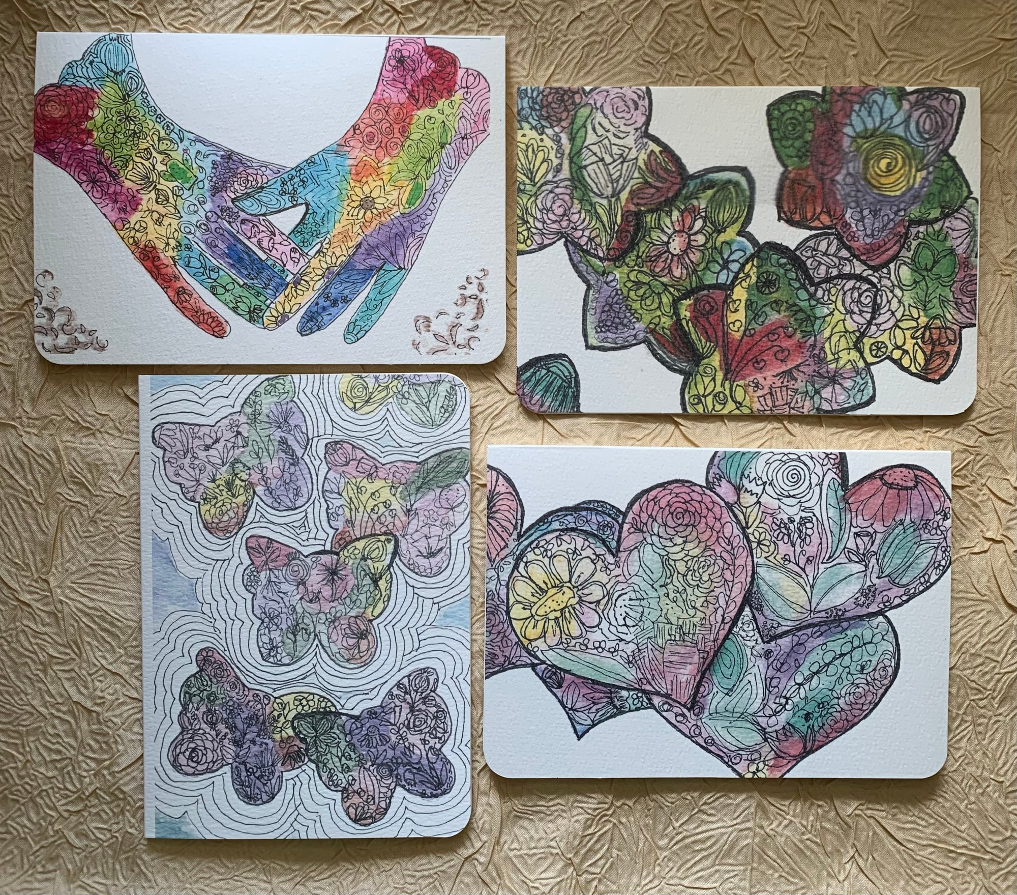 Doodle flowers- 4 card set